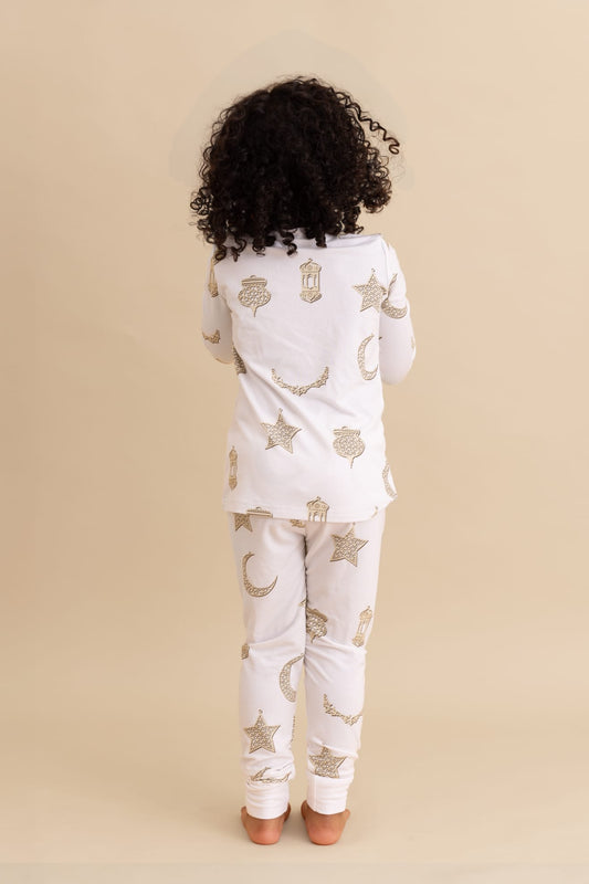 MoonliteKids was founded by Sitra, a mother of three who are a constant source of joy and inspiration. Sitra noticed a lack of representation in major retail clothing stores that celebrate Muslim traditions, holidays, and upbringing. With the support of her husband, MoonliteKids was created to bridge this gap and provide families with pajamas and loungewear that beautifully showcase Muslim traditions.